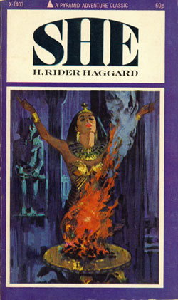 With his third and fourth novels, King Solomon's Mines (1885) and the even more successful She: A History of Adventure [1886-1887] HRH was catapulted to fame [. . .]. These novels of anthropological sf remain his most famous; they established a pattern he would follow for the rest of his career. That pattern might best be described as a central model for Edgar Rice Burroughs and the science-fantasy subgenre whose popularity attended the latter's revival in the 1960s: it is a pattern in which realistic portraits of the contemporary world (in HRH's case South Africa) are combined with backward-looking displacements (in his case invoking Lost Worlds, immortality and reincarnation) to give a general effect of deep nostalgia. [Emphasis added.] (pp. 531-532)